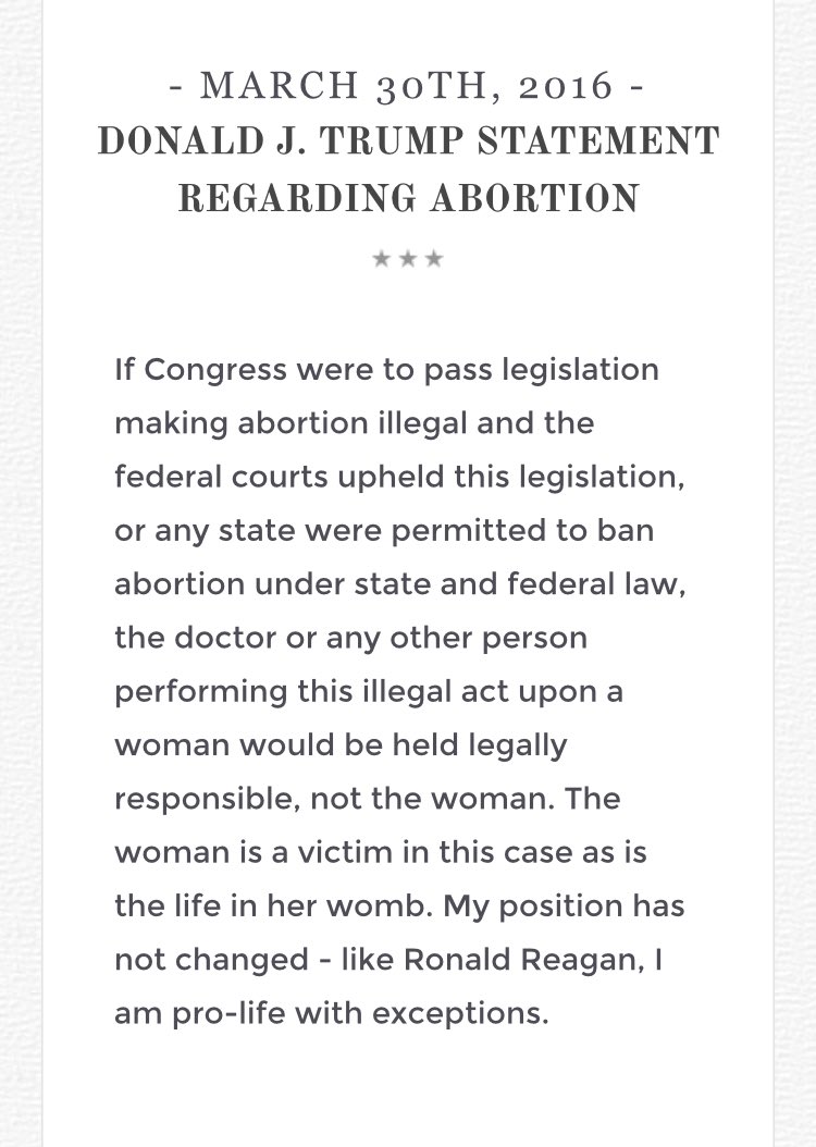 Ohio Governor and Republican presidential hopeful John Kasich has enacted 16 abortion restrictions since he entered office in 2011 – including signing a state budget bill that prohibits state-funded rape crisis counselors from referring women to abortion. However, he attempted to distance himself from Trump’s statements, saying “I don’t think that’s an appropriate response and it’s a difficult enough situation then to try to punish somebody.”