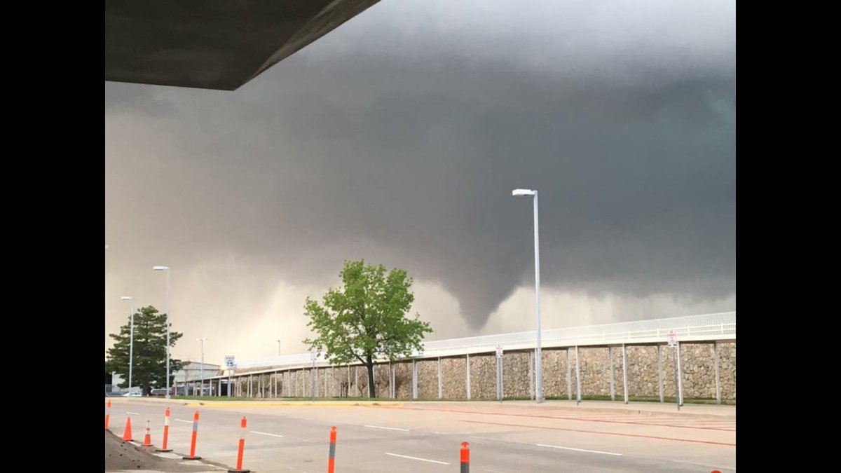 The National Weather Service reported multiple tornados touching down northeast of Tulsa, inlcuding outside the airport.